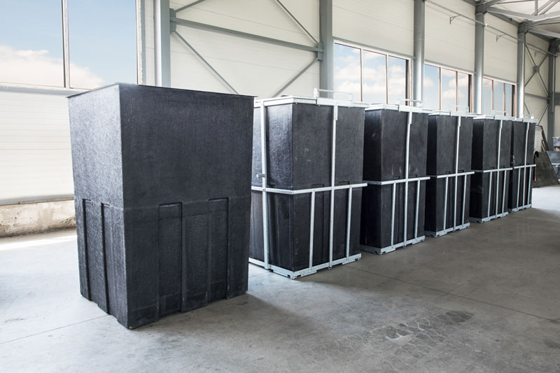 Unutrašnji uložak za betonske blokove je velika plastični kontejner ojačan pocinkovanim metalnim korsetom.